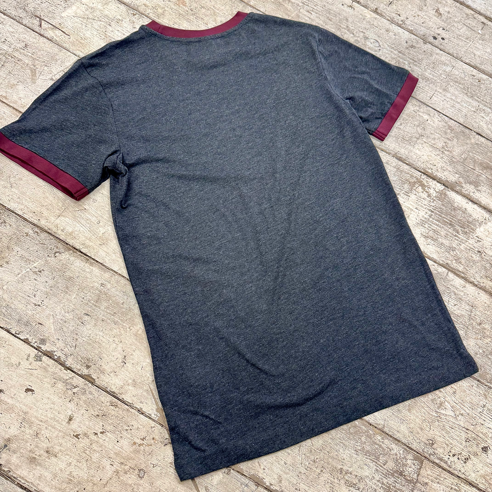 Duz Denim I Ain’t No Cowboy Ringer T-Shirt In Charcoal Cherry